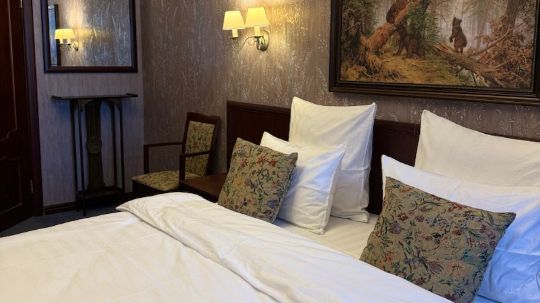 Почувствуйте заботу в каждой мелочи. Для вас в номерах белоснежные халаты, мягкие тапочки и полотенца. Блютуз-колонки, стилизованные под старинные радио и система «Умный дом».